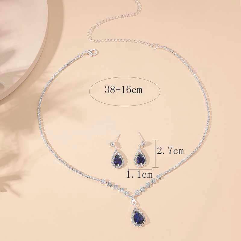 Elegant Ferroalloy Plating Inlay Zircon Silver Plated Women's Earrings Necklace Set