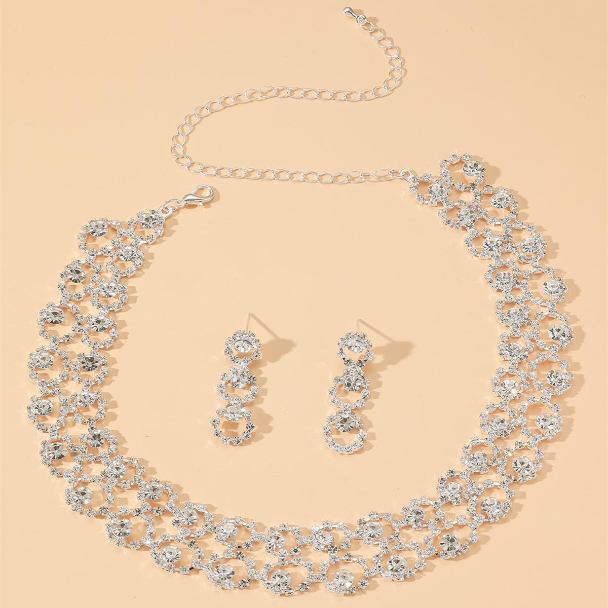 Queen O-Shape Tassel Alloy Plating Rhinestones Earrings necklace Set