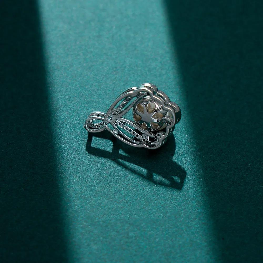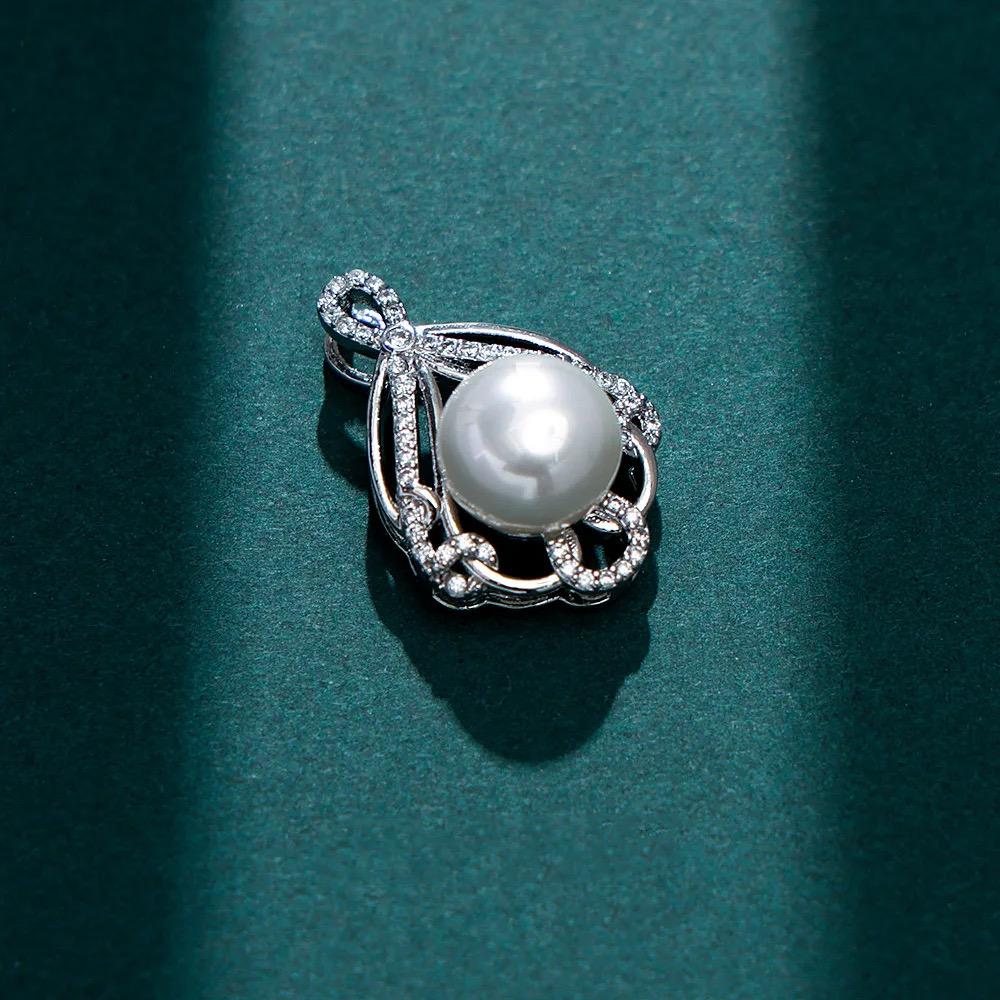 Modern Style Shiny Semicircle Pearl Brass Artificial Gemstones White Gold Plated Cable Chain Pendant Necklace