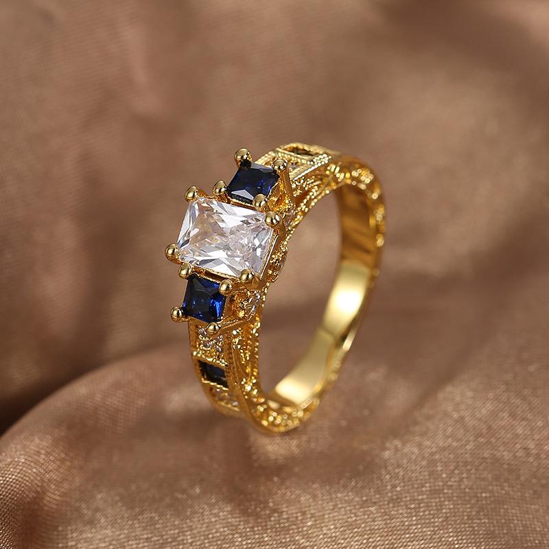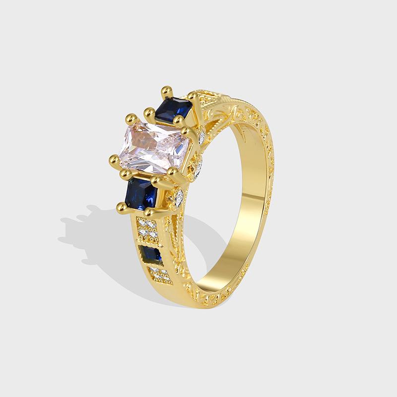 Modern Style Artistic Square Copper Zircon Inlay Ring